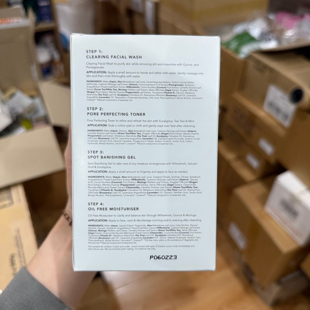 使用我們的 4 步淡斑控制套裝程序自然地消除它們,鎮定和清除您的膚色,從桉樹、茶樹、柳草和水楊酸中去除痘痘。