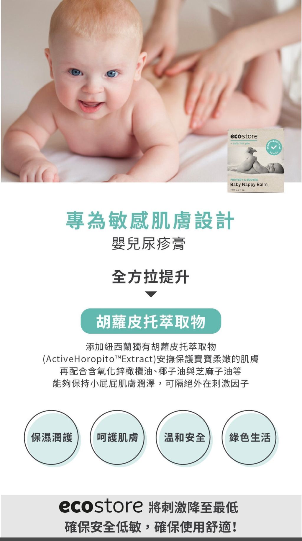 溫和的無香味尿疹膏舒緩和防止尿布疹。由氧化鋅和紐西蘭Horopito 提取物製成,滋養並幫助保護受刺激的皮膚。